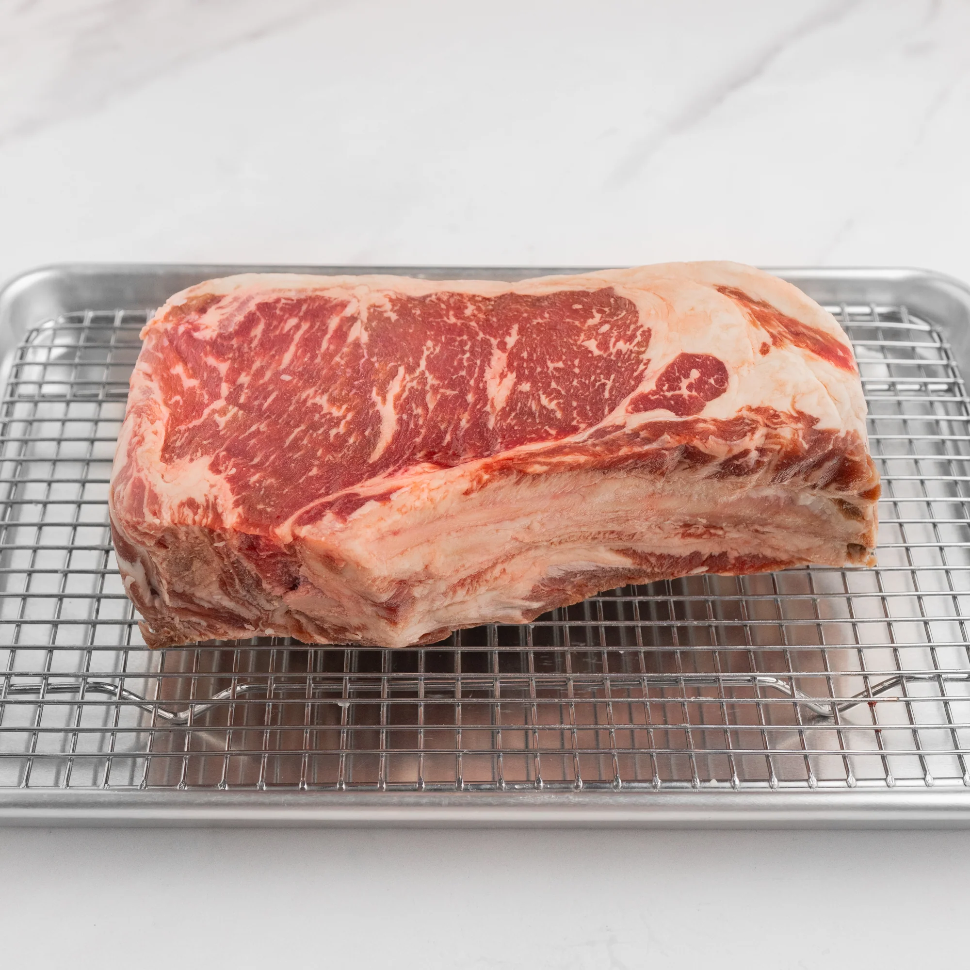The USDA Prime Delmonico is a steak thatās unlike any other. Carefully procured from the area where the ribeye ends and the NY strip begins, this steak has the richness of a ribeye with the firm texture of a strip steak. Cut from USDA Prime grade beef from the Northwest, this is a steak with the bountiful marbling expected from the top 4% of all beef graded to the USDAās standards. Hand-cut to a plentiful thickness, the rib bone is left attached to the steak for a high-end dining experience.