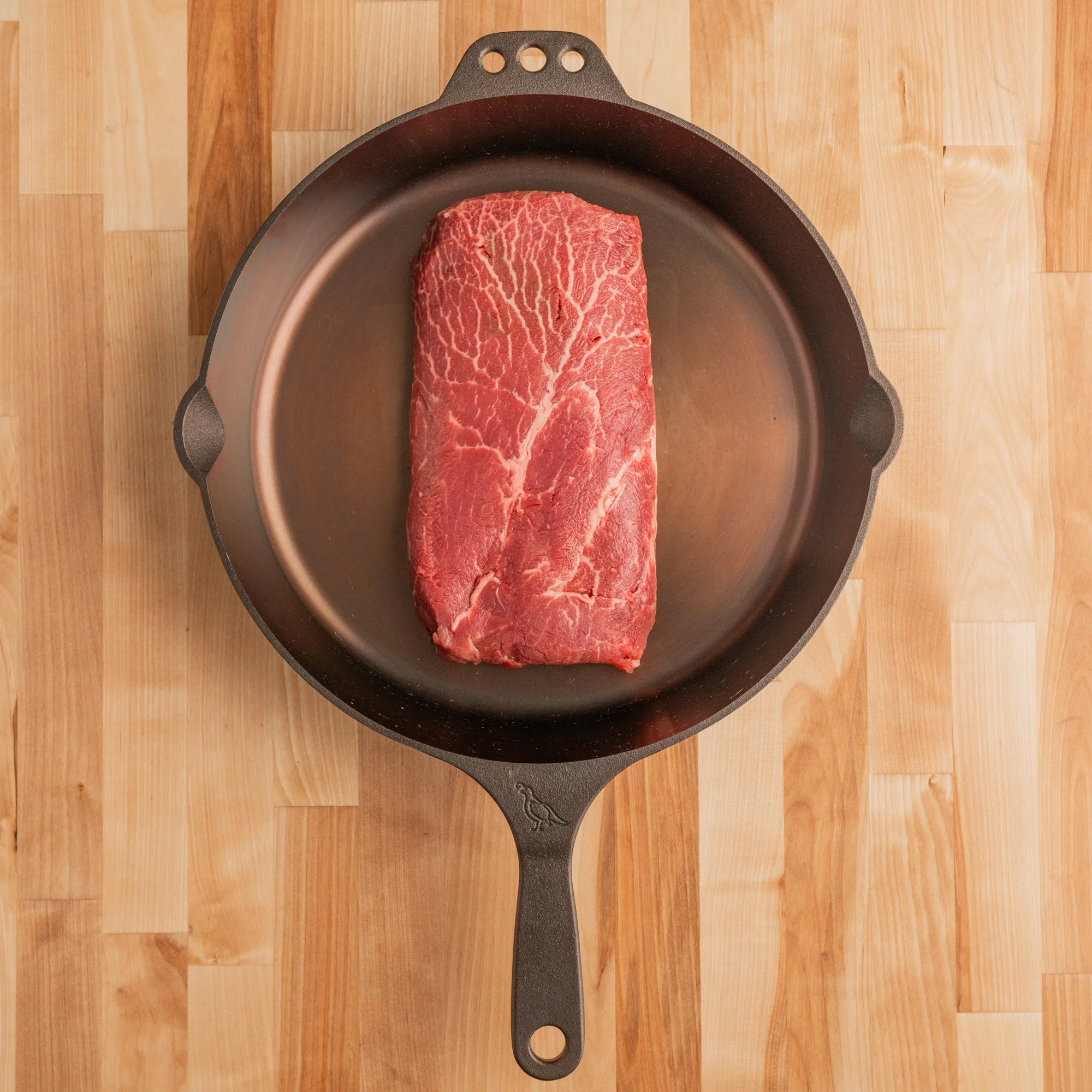 The flat iron is a relative newcomer to the steak scene but has been a butcherās secret for years. Cut from the chuck (shoulder), the flat iron is a fantastic combination of rich beef flavor and a tender, meaty bite. This steak is amazingly versatile; simply throw it on the grill or prepare with your favorite marinade for an extra kick of flavor. While we believe it's best served medium rare, this steak holds up to high heat and is a good candidate for anyone who prefers a well done steak.