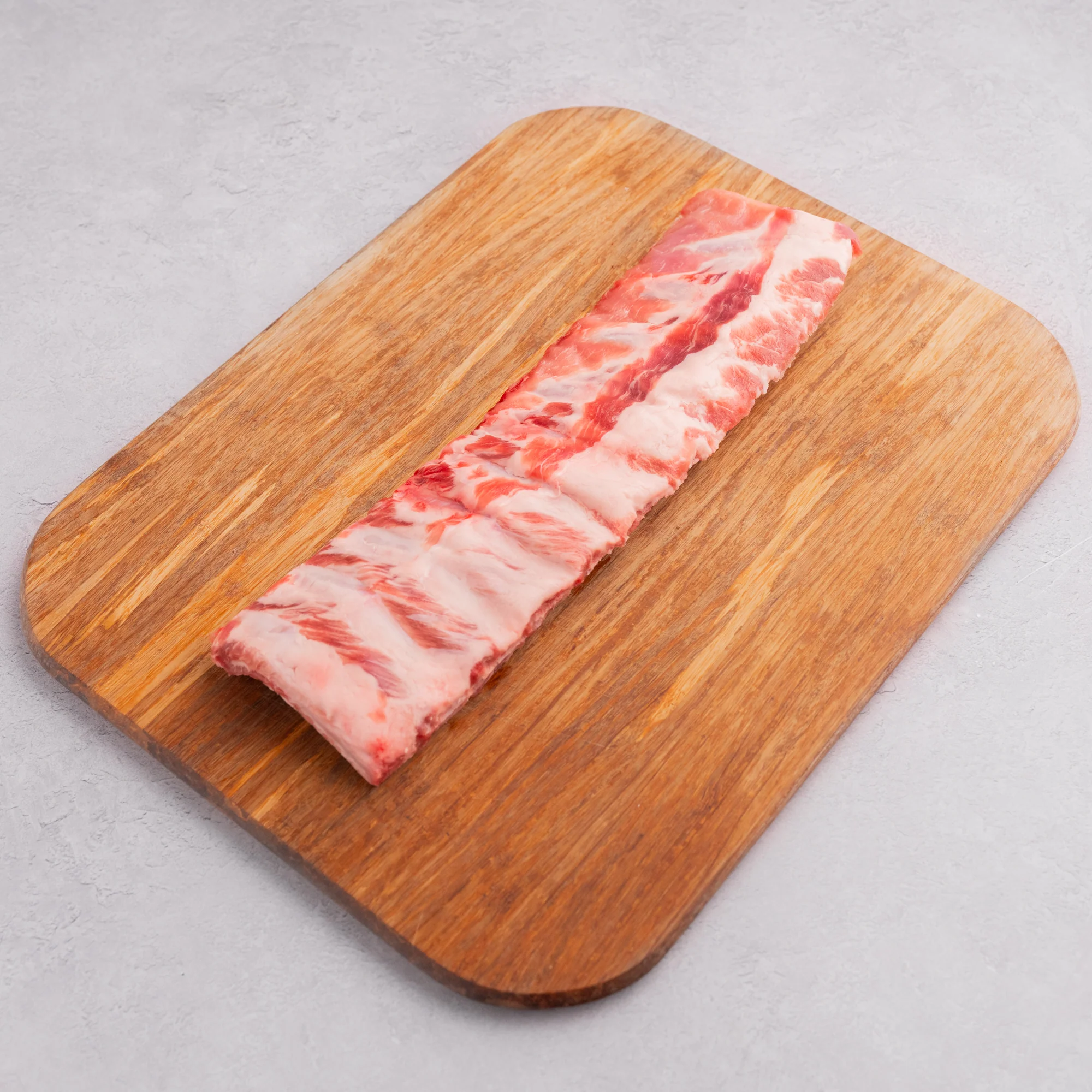 The membrane found on the bone side of all pork ribs is not removed. Kurobuta ribs are smaller in size than conventional pork, and we do not recommend them for competitions.